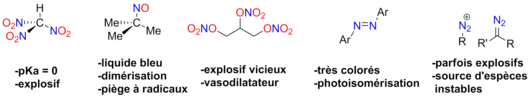 Nous sommes particulièrement fascinés par les groupements fonctionnels oxydants. Les groupes à base d'oxydes d'azote (nitro, nitroso, nitrato, nitrito) et de diazote (azo, diazo, diazonium) ont une chimie organique développée hautement pertinente à la synthèse organique, la pharmaceutique, les matériaux énergétiques et même au domaine des pigments et des composés photoactifs. Les composés qui incorporent ces groupes ont souvent des propriétés très particulières.
